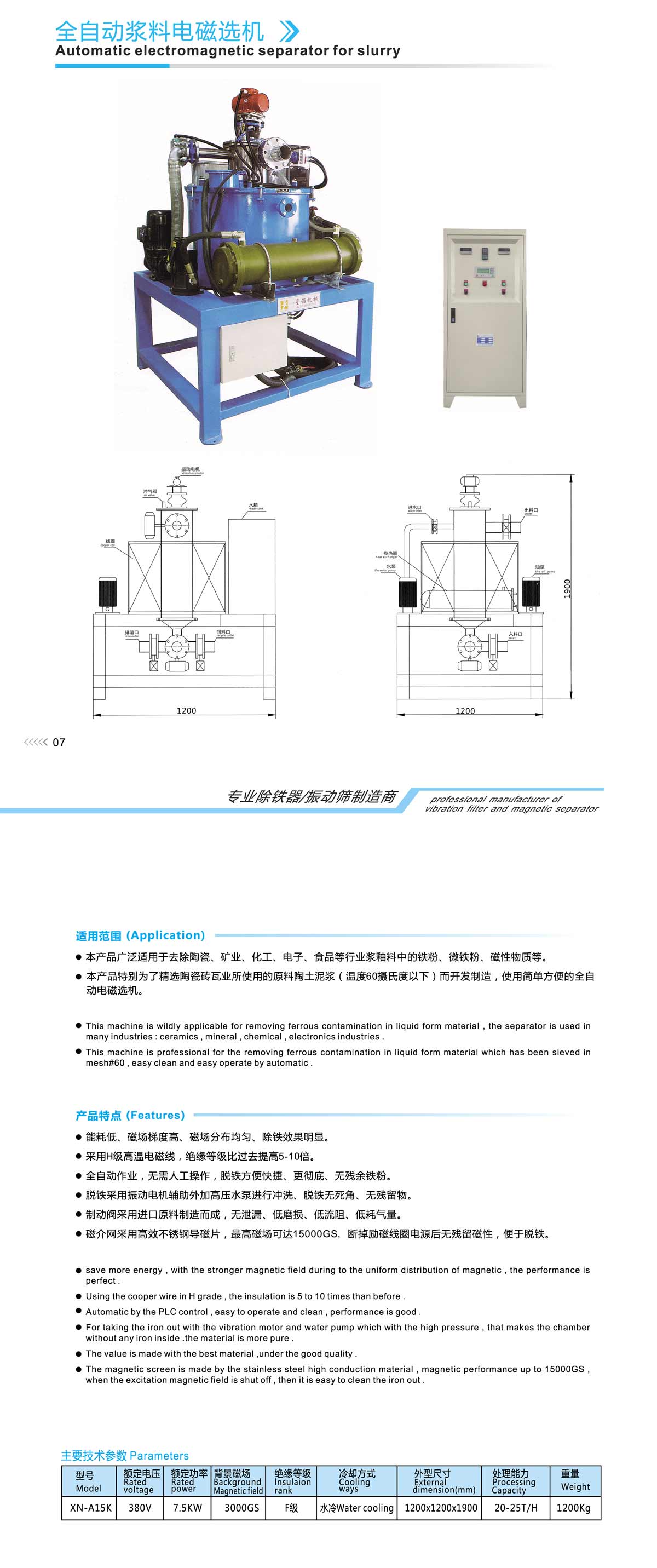 Automatic electromagnetic separator for slurry(XN-A15K)